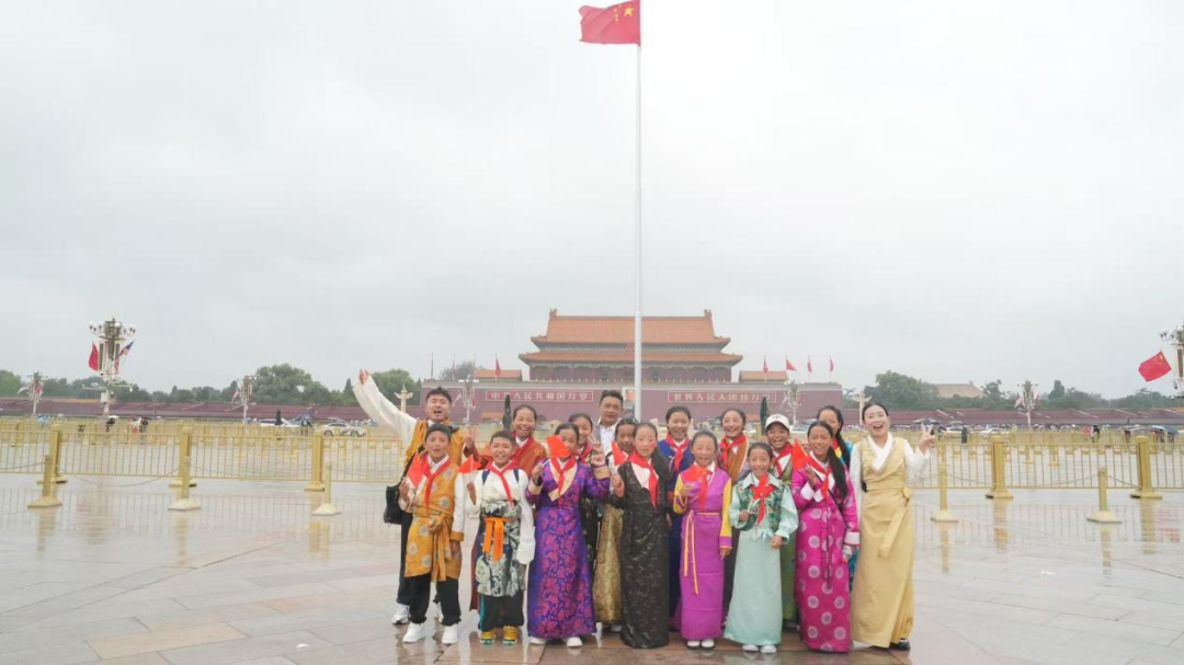 類烏齊縣師生參加“中交助夢(mèng)·天天向上”活動(dòng),在天安門廣場(chǎng)合影