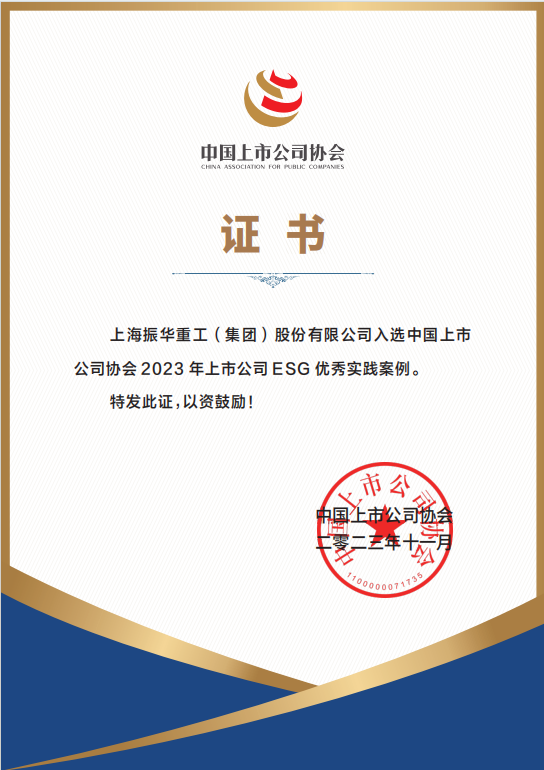 振華重工-上市公司ESG優秀實踐案例證書