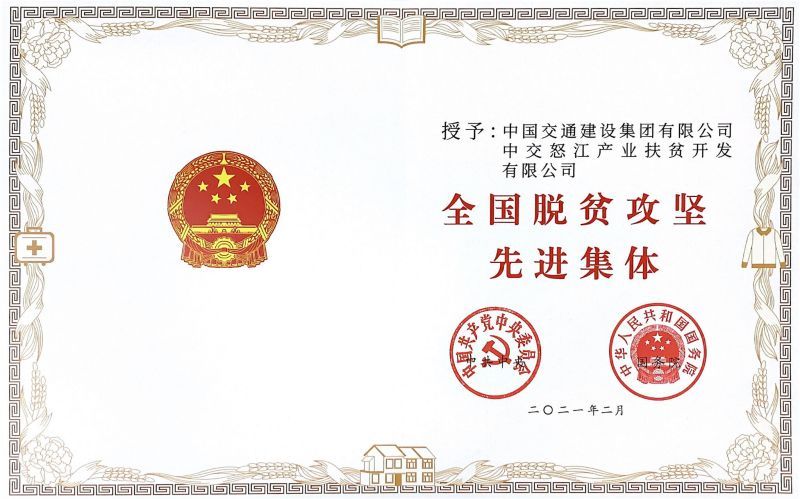 為鞏固拓展脫貧攻堅成果與接續鄉村振興戰略,探索定點幫扶新模式,2019年,中交集團專門組建了中交怒江產業扶貧開發公司,以怒江扶貧開發為主,兼顧區域市場經營,通過“政府+企業”、“計劃+市場”、“長期+短期”幫扶怒江升級發展。在中交怒江公司努力下,屬于“三區三州”深度貧困的云南省怒江州4個縣市如期脫貧摘帽,26.96萬貧困人口全部脫貧,貧困發生率從56.24%下降到0,249個貧困村全部出列,精準扶貧工作獲得怒江人民和各級政府普遍贊譽,并被授予2020年怒江州脫貧攻堅獎“扶貧明星企業”榮譽稱號。