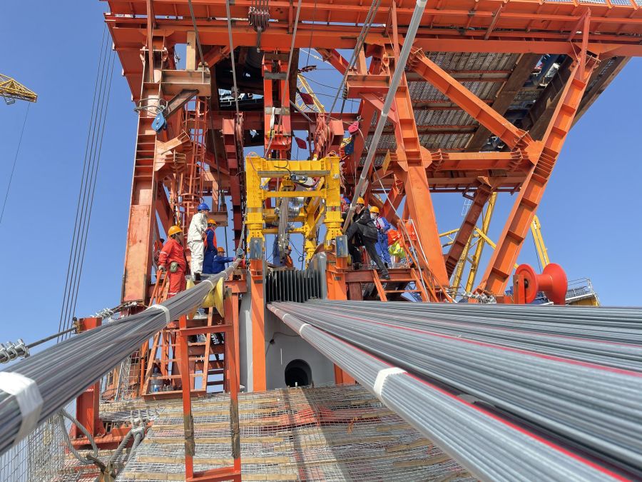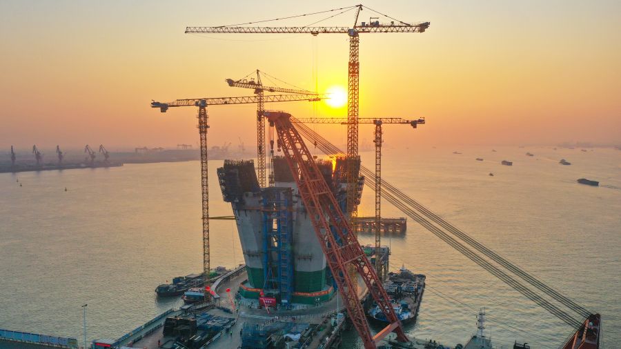 圖3 一體化智能筑塔機應用于深中通道伶仃洋大橋