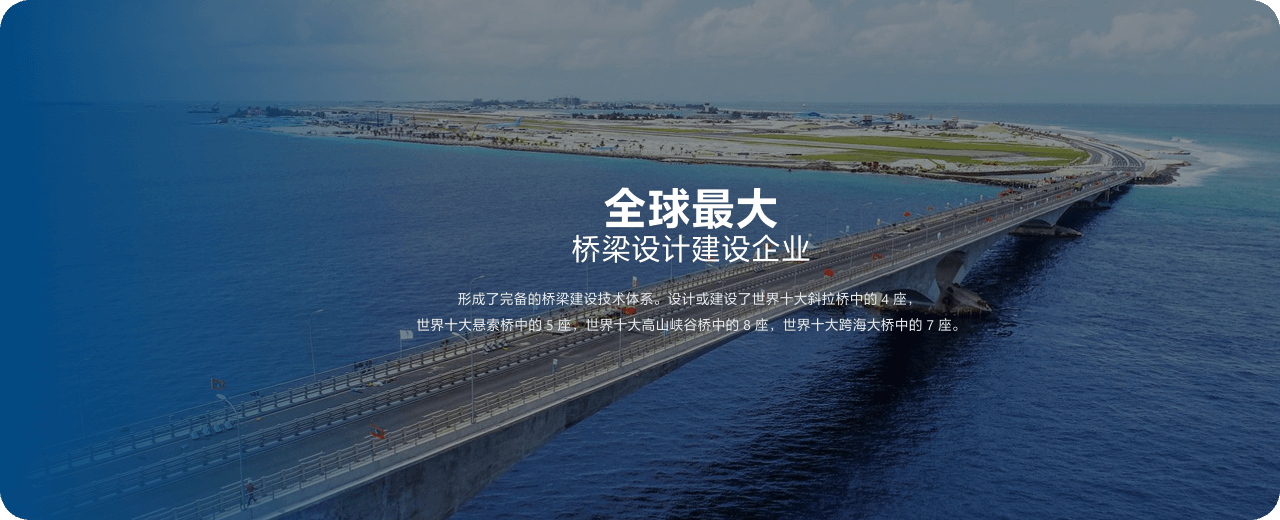 形成了完備的橋梁建設技術體系。設計或建設了世界十大斜拉橋中的 4 座,世界十大懸索橋中的 5 座,世界十大高山峽谷橋中的 8 座,世界十大跨海大橋中的7座。