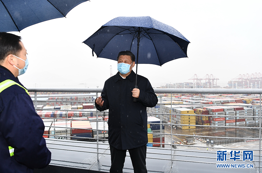 2020年3月29日,習近平總書記來到寧波舟山港穿山港區,就統籌推進疫情防控和經濟社會發展進行調研。習近平總書記指出,寧波舟山港在共建“一帶一路”、長江經濟帶發展、長三角一體化發展等國家戰略中具有重要地位,是“硬核”力量,強調寧波舟山港要堅持一流標準,把港口建設好、管理好,努力打造世界一流強港,為國家發展作出更大貢獻。