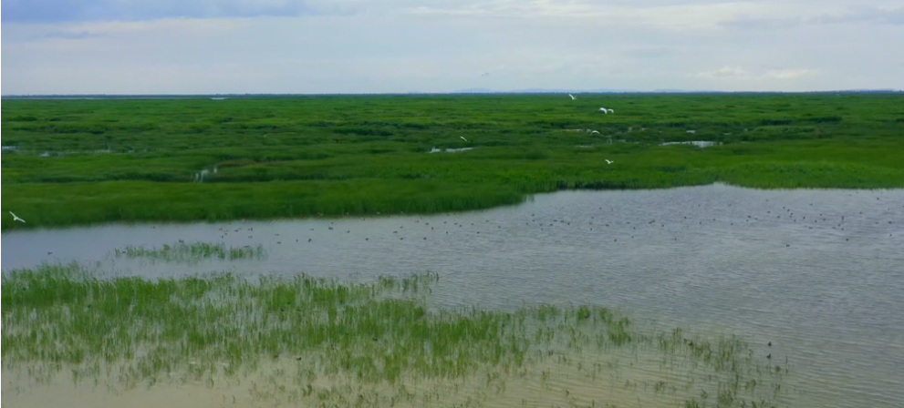幽藍的湖水和金黃的葦叢,疣鼻天鵝等鳥兒輕盈地掠過湖面,這樣的景色來自如今的內蒙古巴彥淖爾市烏梁素海。