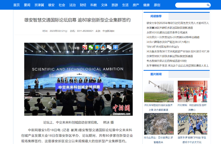 [河北新聞聯(lián)播]雄安新區(qū)召開智慧交通國際論壇 80多家創(chuàng)新型企業(yè)集群簽約