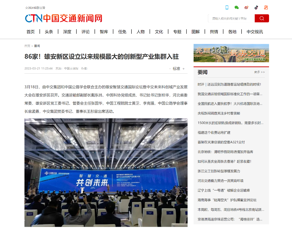 雄安智慧交通國際論壇暨中交未來科創(chuàng)城產(chǎn)業(yè)發(fā)展大會舉辦
