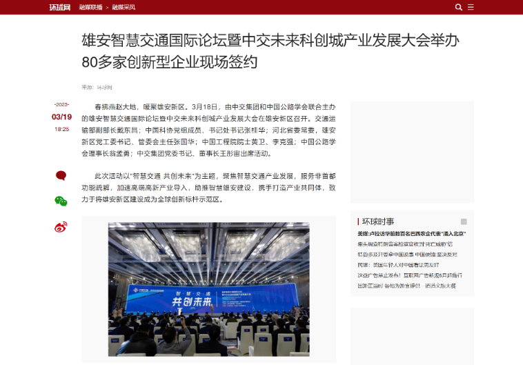 雄安智慧交通國際論壇暨中交未來科創(chuàng)城產(chǎn)業(yè)發(fā)展大會舉辦80多家創(chuàng)新型企業(yè)現(xiàn)場簽約