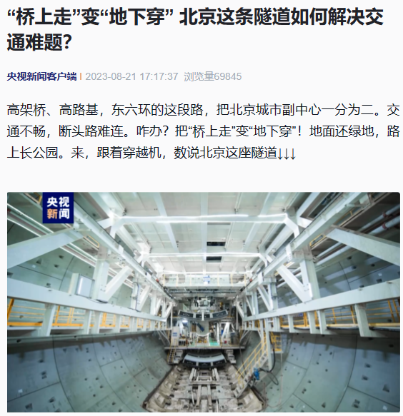 新華社多個媒體平臺報道北京東六環改造工程雙線貫通,累計瀏覽量超70萬次。